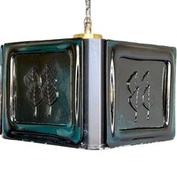 Vintage pendel i blåt strukturglas - sekskantet model