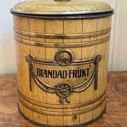 Ældre Plåtburk burk BLANDAD FRUKT GEFLE CACAO CHOKLAD KONFEKT LAKRITZ förvaring