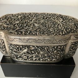 Dekorativ æske med fugle og blomster, gennembrudt sølv ?