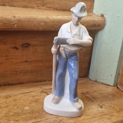 Figur i porcelæn mand med le dræng