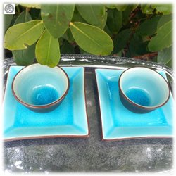 Dobbelt sæt Mio fade og skåle turkis Fin stand