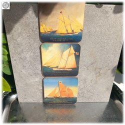 3 kork coastere fra Pimpernel med flotte skibe mærket på bagsiden