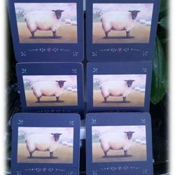 6 coasters motiv sorthovedede får med hvid krop så smuk