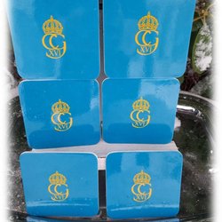 6 coasters motiv Carl Gustav Pass på 50 år på tronen blågul