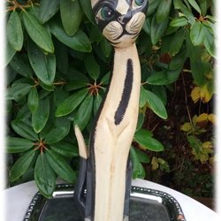 Stor kattefigur ligner siamesisk sort i håndlavet træ, håndudskåret Fin stand