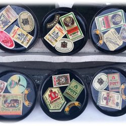 6 coasters motiver spiritus logoer af forskellig slags sort baggrund