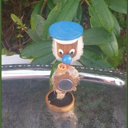 Søkaptajn sømandsfigur af skal og teaktræ med tønde ved roret magnet JAPAN