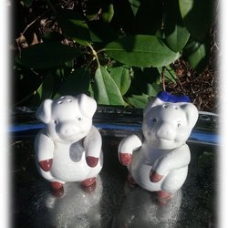 Salt og peber shaker krydderskål i form af grise sjælden årgang