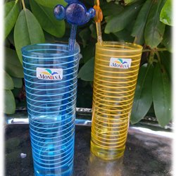 Appetitlige Paret Montana glas i gul og blå stribet med drikkepinde Mickey Pig