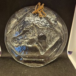 Gammel retro glasplade glasdyr hest hesteliv vinduesophæng