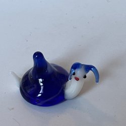 blå hund med sort snude (3cm) glasfigur / glasdyr