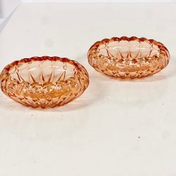Bøhmiske Slebet Glas Skåle 2 stk. Vintage Lyserød Retro (5.4)