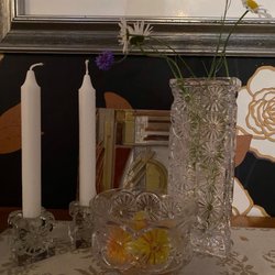 Men det är inte bara vaser du hittar här. Inom glas finns en rad andra föremål som kompletterar ditt hem. Upptäck Traderas breda utbud av glasartiklar, såsom skålar, bruksglas och kristallglas. Kanske hittar du en snygg karaff att servera din favoritdryck ur, eller en vacker skål att fylla med frukt eller godis. Det finns alltid något nytt att upptäcka!