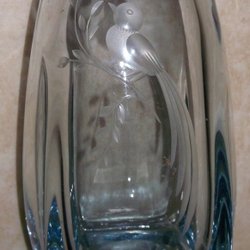 Glasvase med udskåret fugl med lange halefjer Vintage