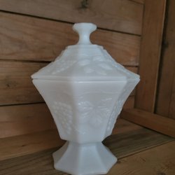 Vintage Anchor Hocking skål med låg mælkeglas milkglas opalinglas Lockskål