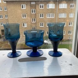 3 indigoblå glas Orrefors + Åseda