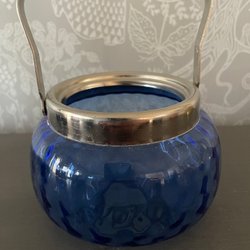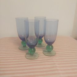 Fire blå glas. Basun av Vallien. Boda