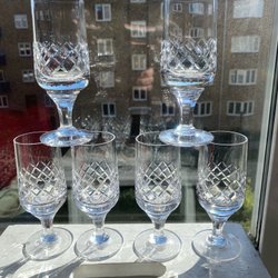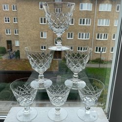 6 vin-/champagneglas - facetslebne i fineste krystal