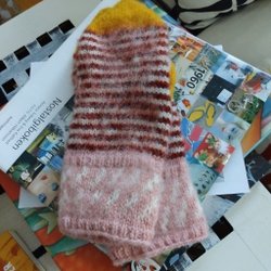 Strikkede damehandsker af restgarner.