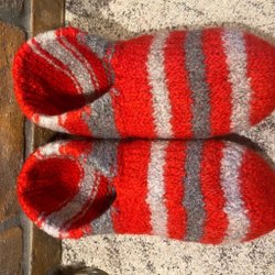 TOVADE ULLTOFFLOR str. 39/40 hjemmestrikkede 100% ull RÖD/GRÅ