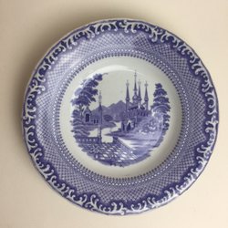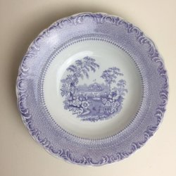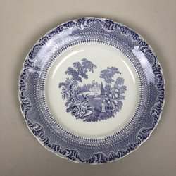 Dyb tallerken ca. 24,5 cm, 1800-tallet, Rörstrand, lilla spidsmotiv park
