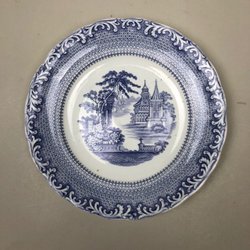 Tallerken ca. 21 cm, 1800-tallet, Rörstrand, lilla spids, Motiv Fontän Balustrad