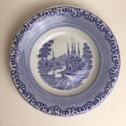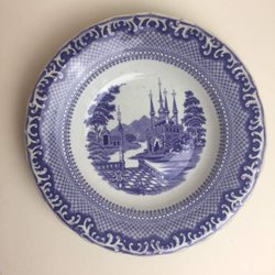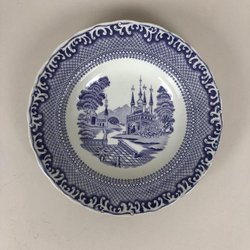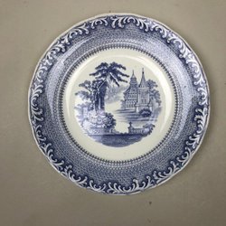 Dyb tallerken ca. 23 cm, 1800-tallet, Rörstrand, lilla spids, motiv terrasse