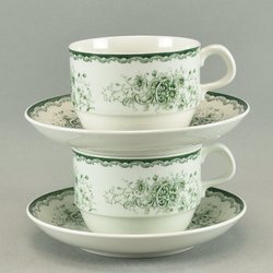 2 Tekopper med underkop - Grön Anna - Rörstrand - VDN