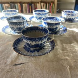 17 kaffekop, 18 kaffefat signeret ALP Lidköping 1928
