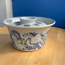 Turi Design "Lotte" Terrin med håndtag og låg. Håndmalet serigrafisk tryk. Som ny