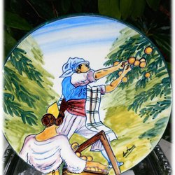Vidunderligt håndmalet fad keramisk orange pick vægfad håndmalet tegn Antonio