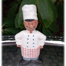 Vidunderlig dejlig kok i keramisk figur mærket LW OLE forneden