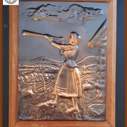 Kunst kobber relief Ragnar Parcks kunst smedning studie dalkulla horn blæser Vintage