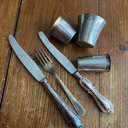 Fördelen med matsilver är att det håller mycket hög kvalitet. Gafflar och knivar i äkta silver håller hur länge som helst. De kan oxidera med tiden, då blir besticken svarta, men detta putsar du enkelt bort genom att lägga aluminium i en kastrull. Lägg sedan i besticken, häll på vatten så att besticken täcks. Koka upp vattnet och lägg i ett par skedar bikarbonat. Efter en kort stund är den svarta beläggningen borta och besticken skiner återigen!
