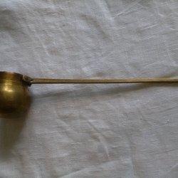 Antik messingkande med træhåndtag