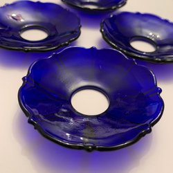 B3/ 3ST BLÅ LYSMANCHETTER I GLAS/ RETRO