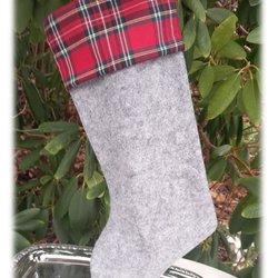 Skøn julestrømpe i grå filt og tartan stribe Pæn stand