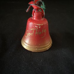 Gammel Julklocka i keramik. God Helg. Skade men smuk klang. 6 cm. 1950'erne