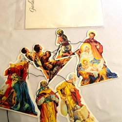 Juletræspynt. Guirlande. Julkrubban. Jesusfamiljen. Hårdpapp. 6 figurer. 15cm.