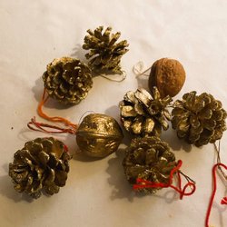 Juletræspynt. SIA fyrrekogle i guld. Størrelse: 10x7 cm. Nyt fra gavebutik.