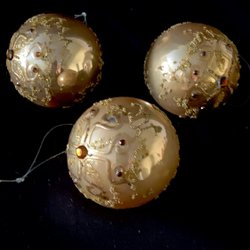 Juletræspynt. 3 stk. Guldkulor i glas. 7 cm i diameter. Ny fra gavebutik