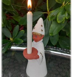 Lucia figur i træ lysestage med krans.