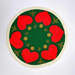 LILLE RUND JULEDUG – HJERTEN PÅ GRØN BUND, Ø15 CM, 1970'ERNE, RETRO/VINTAGE