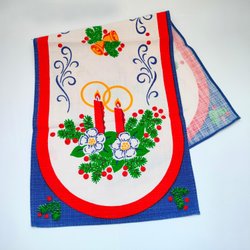 Vintage Broderad Julduk Löber Lysestager Text