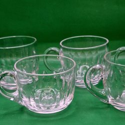Sex lidt ældre håndmalede gløggkrus i glas