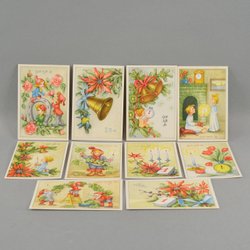 10 gamle ubrugte Godt Nytår - Kort - 10,5 x 7 cm - Forskellige motiver