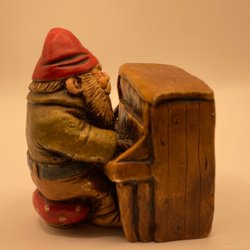 Trädgårds Tomte Spiller Piano unik vintage design nisse samlerobjekt