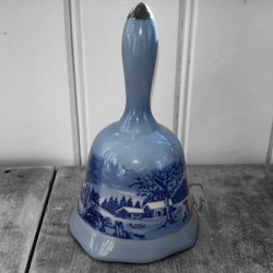 Porslinsklocka blå/hvid med vintermotiv – retro pynt