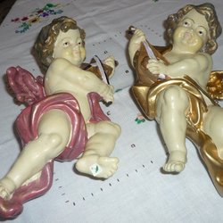 To ældre engle med instrumenter. Retro vintage.