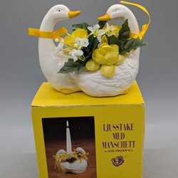 Om man vill ordna påskstämning i hemmet till en billig peng är Tradera en ypperlig plats att leta efter prisvärda påsksaker. Här finns annonser för det mesta som har med påsken att göra, inklusive begagnade påskdukar, bordstabletter, löpare, gardiner, kuddar och väggbonader med klassiska påskmotiv – både i nyare design och i retrostil. Prydnadskycklingar, påskharar, äggkoppar, gula ljus, ljusstakar och manschetter är andra vanliga påsksaker som ofta dyker upp i utbudet. Precis som påskgummor, tuppar, hönor och ägg i olika varianter. Förutom handmålade prydnadsägg, traditionella påskägg och godisgömmor av olika slag kan man även ha turen att stöta på begagnade designerägg i nyskick från formgivare som Lasse Åberg och Ulrika Hydman Vallien. Man kan också hitta äggvärmare och andra virkade påsksaker med fina mönster, liksom mängder av fjädrar och mindre pynt att hänga i påskriset. Däribland hela set med små påskkycklingar, glasdroppar, ägg, virkade blommor, hjärtan, skruvar, harar och liknande figurer. Tillgången på påsksaker varierar beroende på aktuella annonser, men oavsett vilken typ av påskpynt man föredrar att pryda sitt hem med finns det goda chanser att hitta någonting man tycker om här på Tradera.